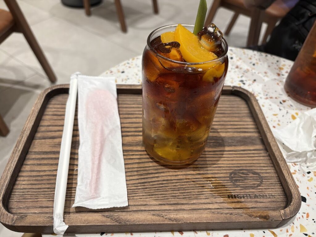 こちらのハイランズコーヒーではアイスのアメリカンコーヒーをたのんでみました。すごく軽い飲み口で、私的にはもう少しコーヒーのコクが欲しかったけど、ぐびぐび飲めるアイスアメリカンでした。